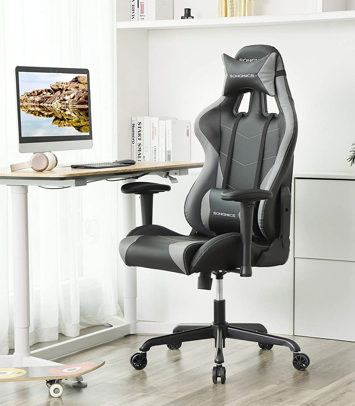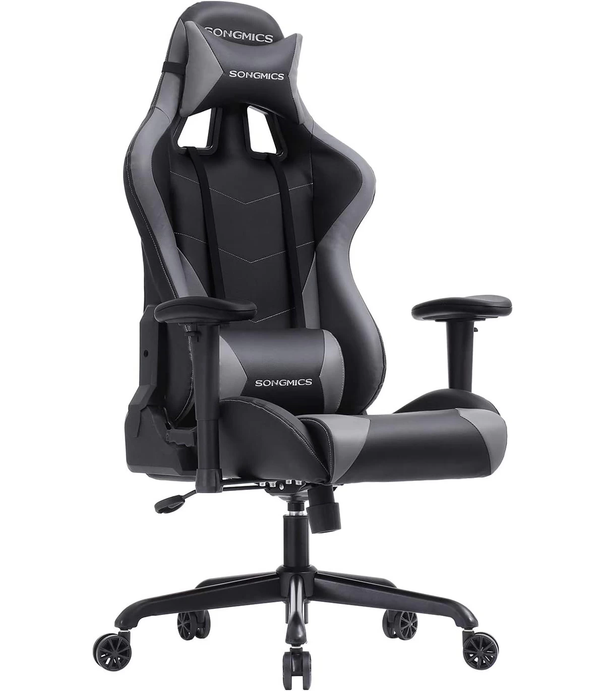 Acest scaun de gaming ergonomic de culoare negru/gri are un sezut foarte mare si spatar inalt - doar in acest fel este demn de un adevarat gamer.