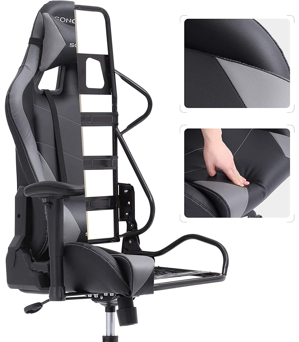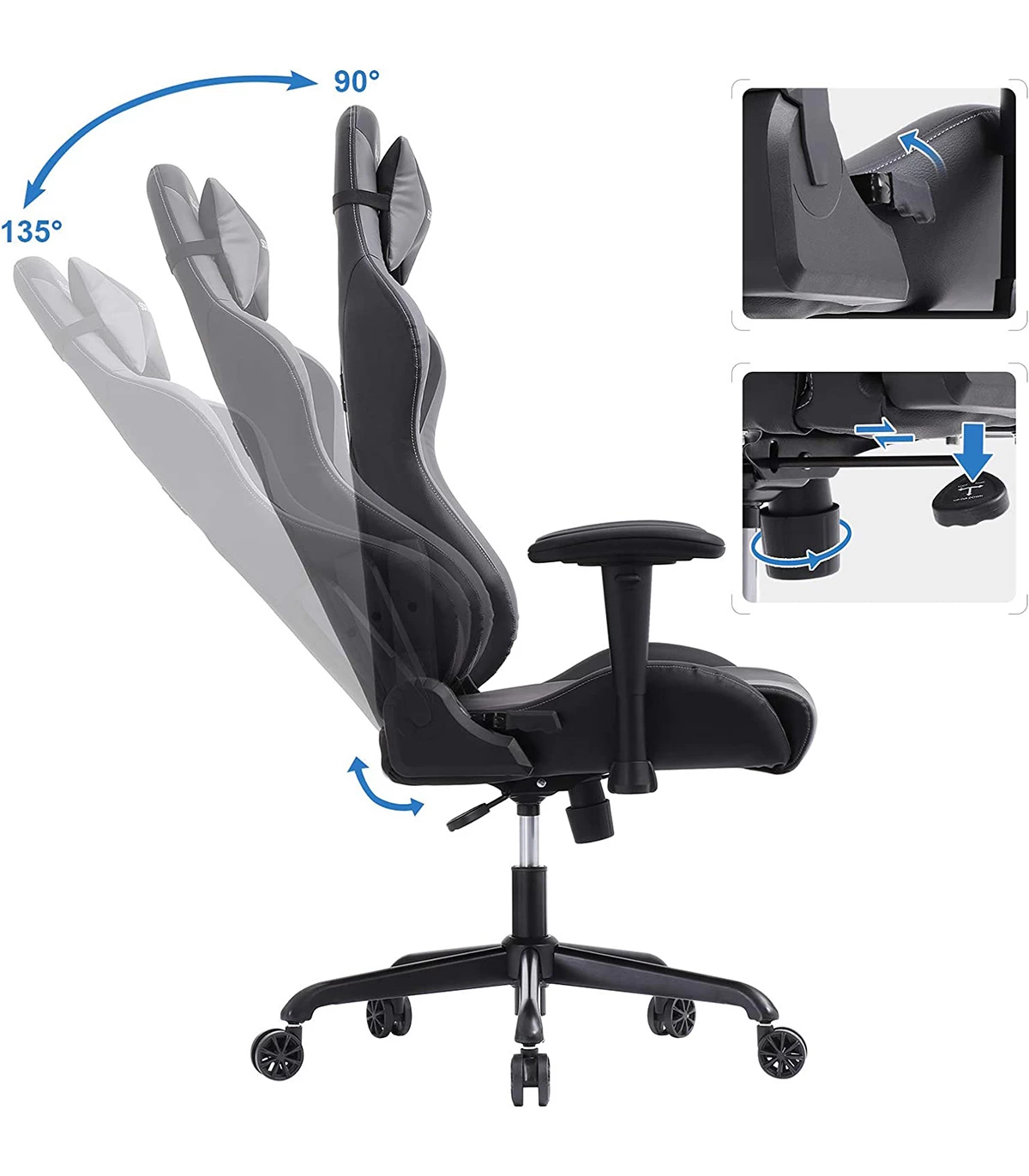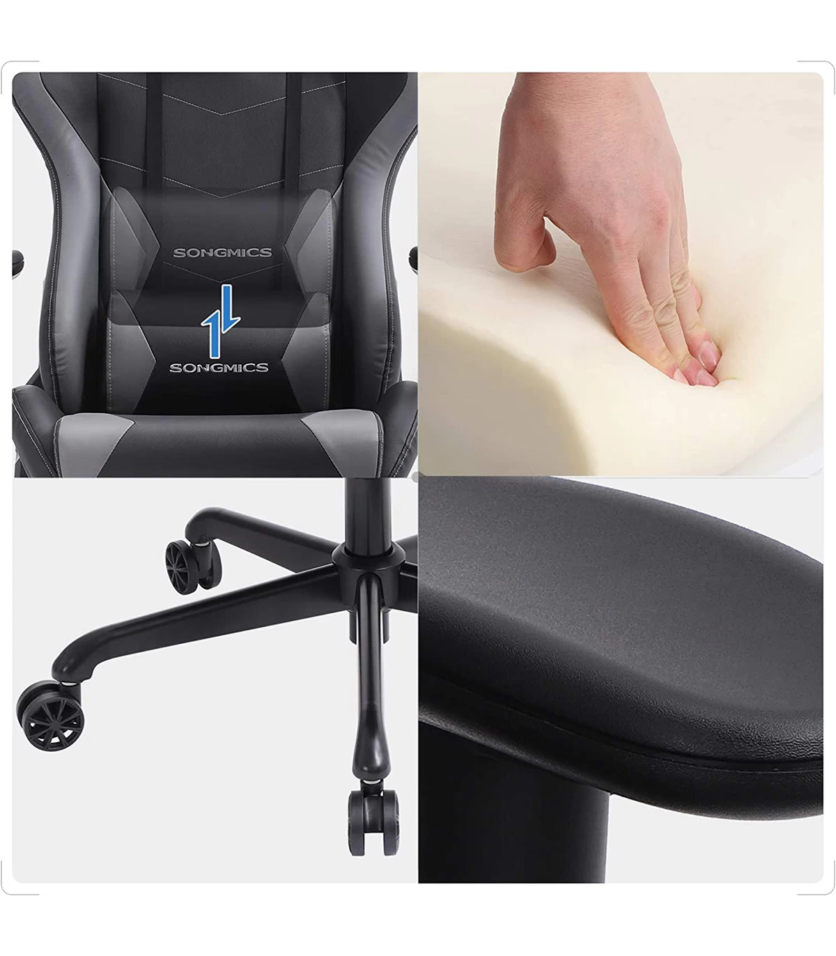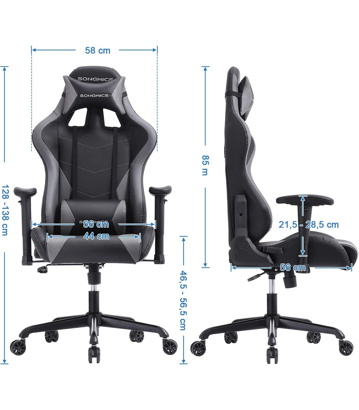 Scaun de birou/gaming cu spatar inalt, Gri, max. 150kg