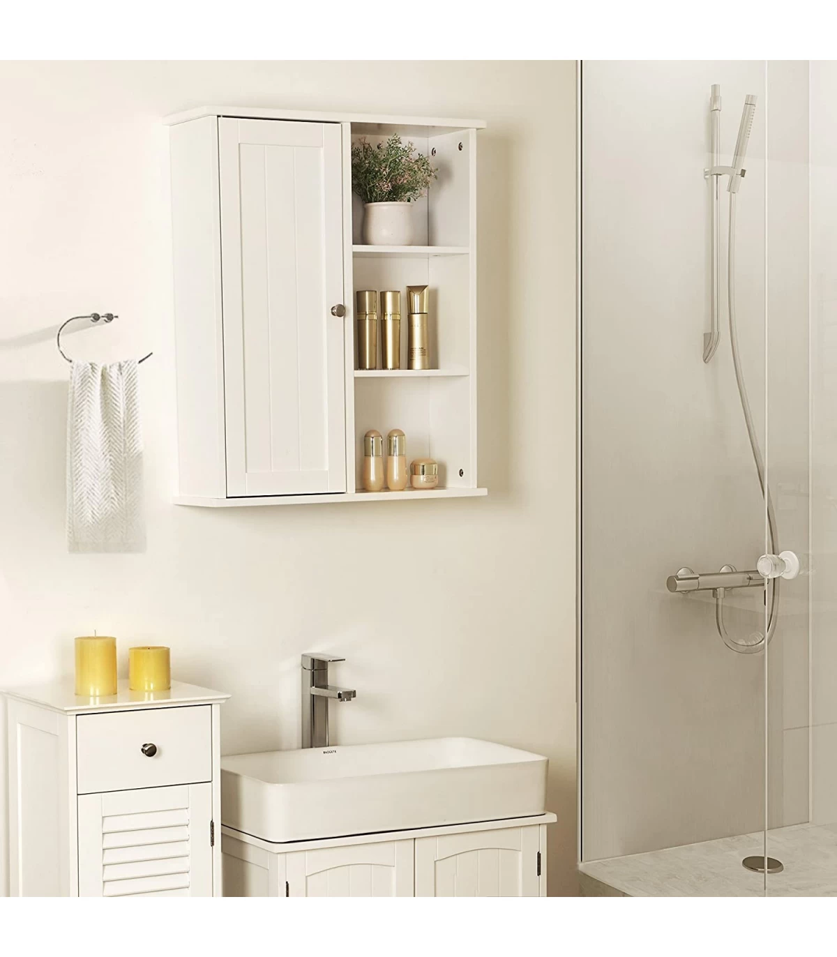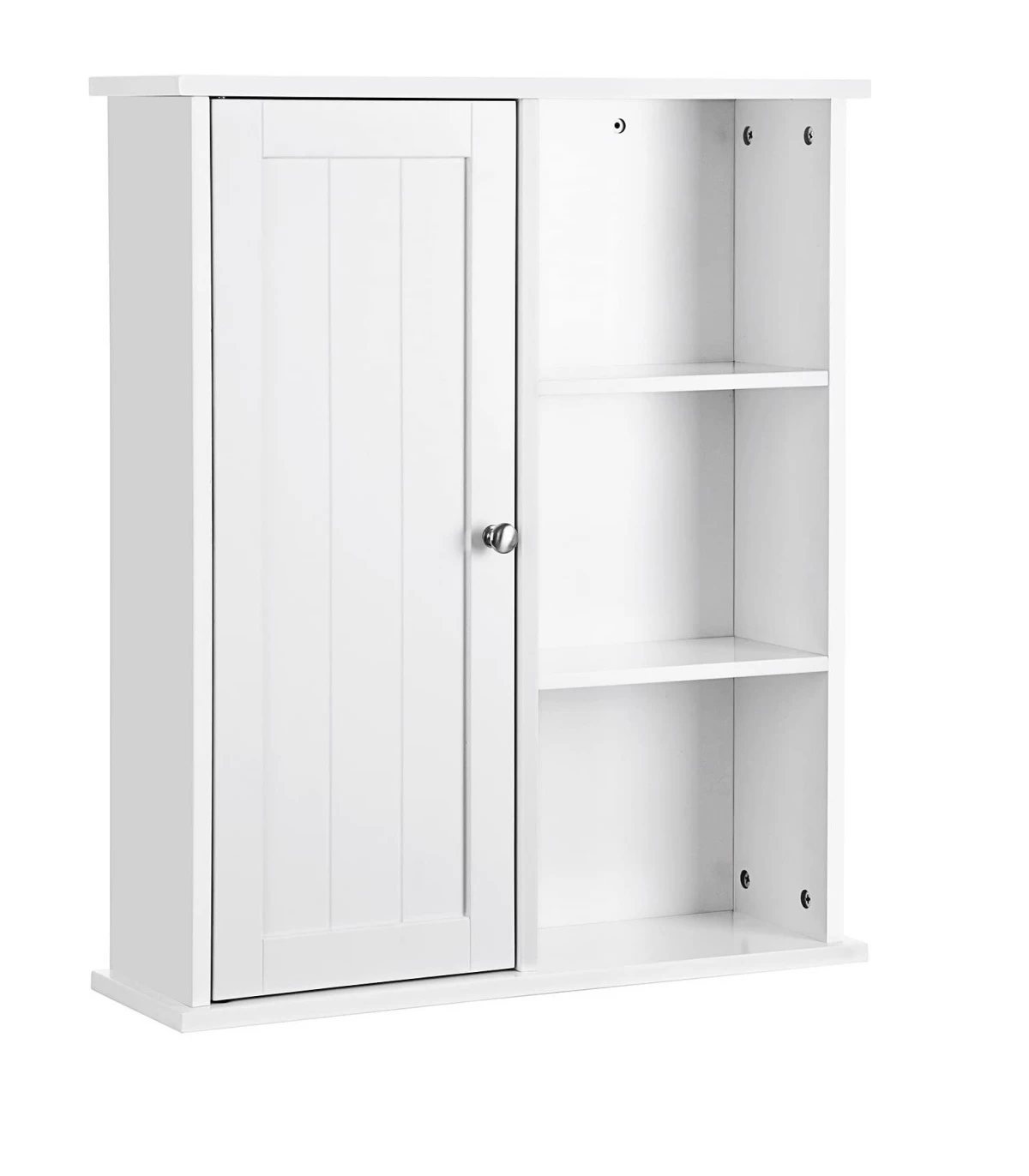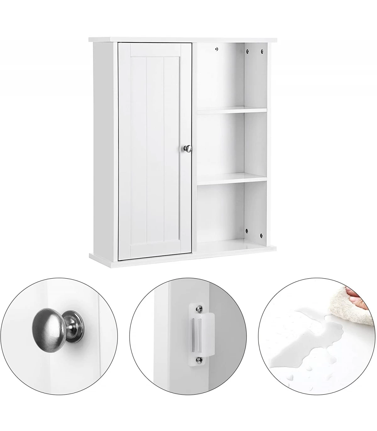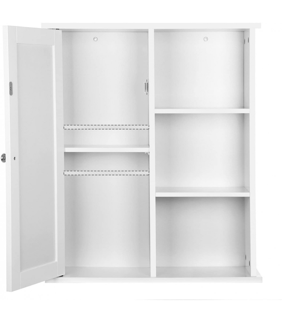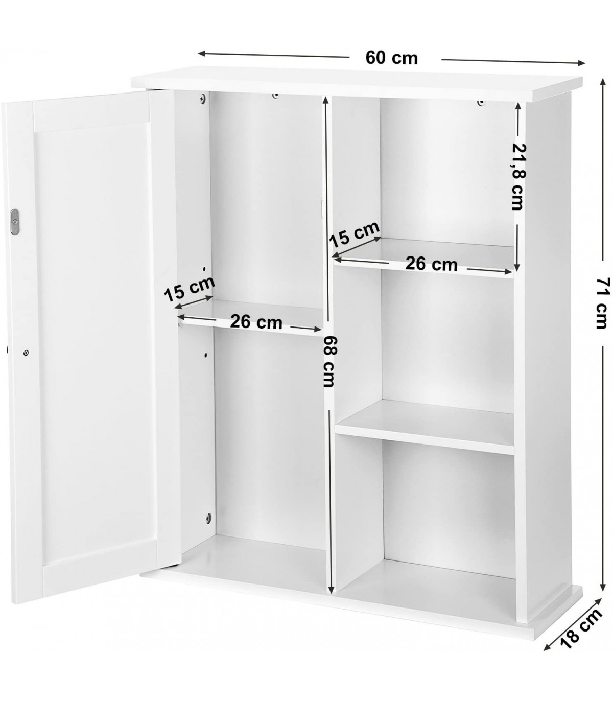 - Datorita montarii pe perete, dulapul ocupa putin spatiu (dimensiuni: 60 x 71 x 18 cm) - Puteti utiliza suruburile si diblurile furnizate pentru a fixa ferm dulapul de perete pe perete. Drept urmare, dulapul economiseste spatiu pretios pe podea si foloseste optim camerele la inaltime